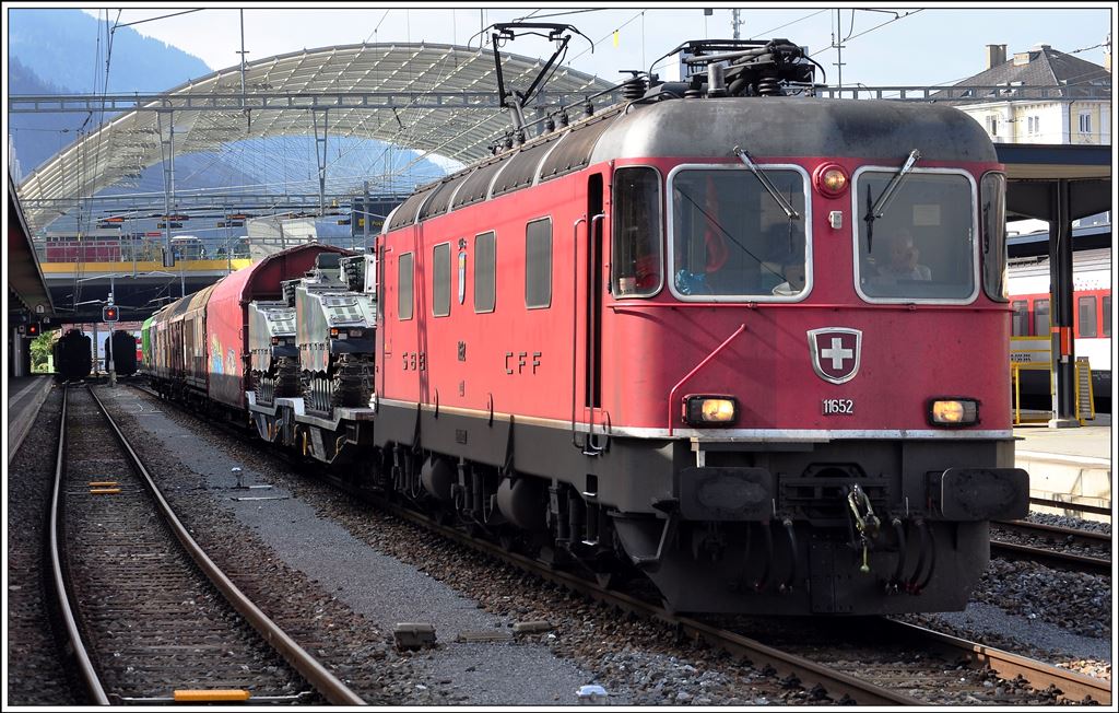 Re 6/6 11652 wartet in Chur auf die Streckenfreigabe.