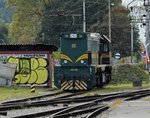 SBB/CJ: Bei der CJ sind die ersten Güterzüge bereits am frühen Morgen unterwegs. Bei nebligem Herbstwetter, wie am 29. September 2016, kann dadurch das Fotografieren recht unangenehm werden. Morgenstimmung bei einer Rangierfahrt mit der Re 6/6 11623 "Rupperswil" in Tavannes.