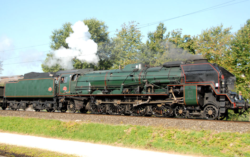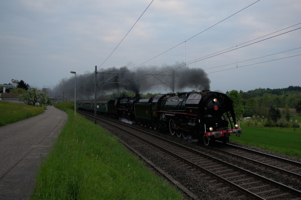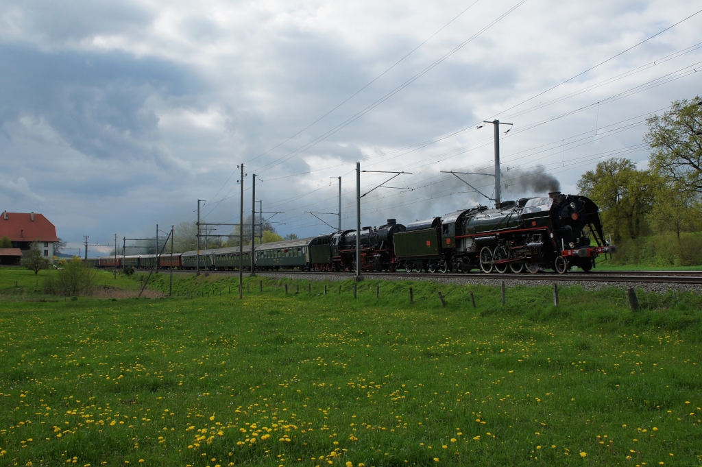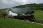 41 018 war während rund zwei Wochen in der Schweiz zu Gast und nahm unter anderem am 1. Dampfloktreffen in Sissach teil. Auf dem Bild zu sehen ist sie mit einem langen Extrazug oberhalb von Trimbach.