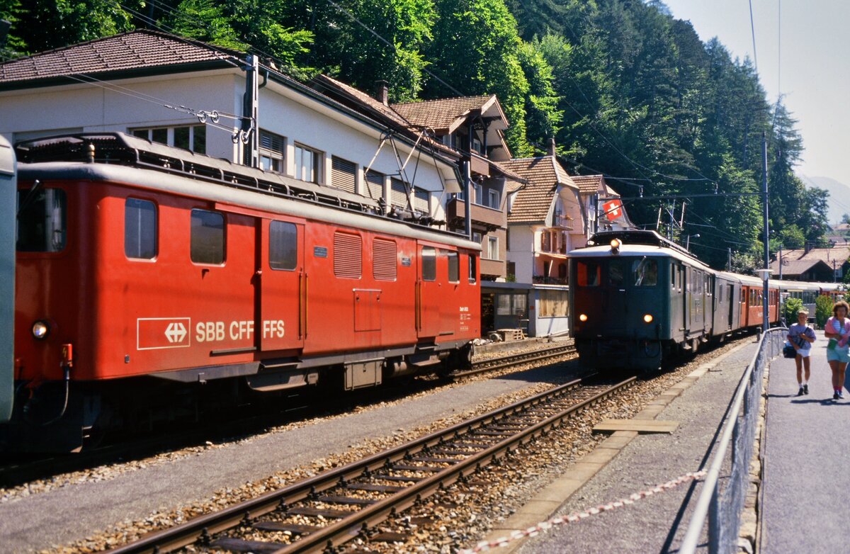Brünigbahn zu SBB-Zeiten, Bahnhof Brienz (Datum leider unbekannt). Die Brünigbahn war bis einschließlich 2004 die einzige Schmalspurbahn und auch die einzige Zahnradbahnlinie der SBB.
