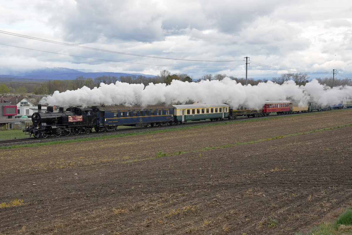 Für die Gourmet-Fahrten der vielen Geniesser standen am 9. und 10. April 2022 die Eb 3/5 Nr. 5810, ex SBB (SLM, 1911) von der Dampfbahn Bern (DBB) sowie der BDe 4/4 ll 201 „BURGDORF“ vom Verein Pendelzug Mirage (VPM) im Einsatz.