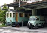 ASm: Auch die OJB musste sich während den früheren Jahren mit der Uebernahme von "Occassionsfahrzeugen" begnügen, da die finanziellen Mittel für den Kauf von neuen Fahrzeugen fehlten. Im Jahre 1955 konnte von den Zugerland-Verkehrsbetrieben der CFe 4/4 3 (1913) zusammen mit drei weiteren Triebwagen erworben werden. Bei der OJB stand die Nummer 3 aus dem Zugerland von 1955 bis 1993 als BDe 4/4 9 (BFe 4/4 9), Xe 4/4 131 sowie Xe 4/4 93 im Einsatz. Obschon die Fahrzeugnummer mehrmals verändert wurde, blieb er über all die Jahre im Originalzustand erhalten. Aus diesem Grunde wurde er nach der Ausrangierung vom Orion-Club ins Zugerland zurückgeholt und sehr sorgfälltig restauriert. Der "ELEFANT" -wie man ihn liebevoll nannte- wird nun schon seit einigen Jahren im Verkehrsmuseum Neuheim, wo diese Aufnahme am 14. Mai 2011 entstanden ist, ausgestellt.