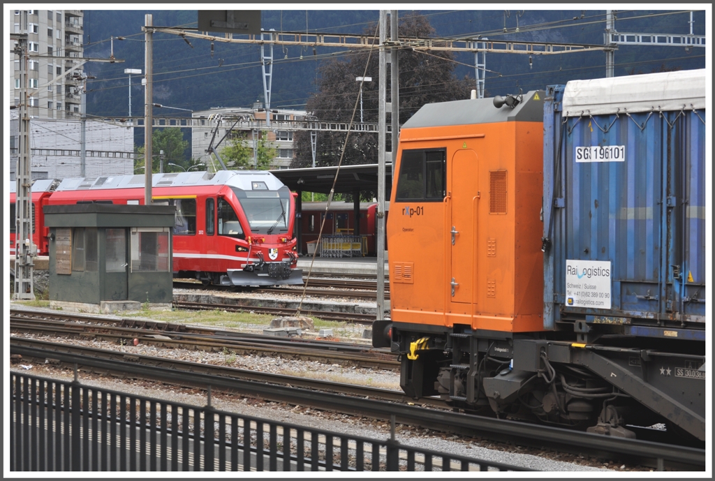 Der motorisierte Steuerwagen (umgebaut aus einem DB Cargo-Sprinter) dient anscheinend nur noch zum Verschub auf ein nicht elektrifiertes Gleis in Landquart.(01.06.2011) Herbert Graf