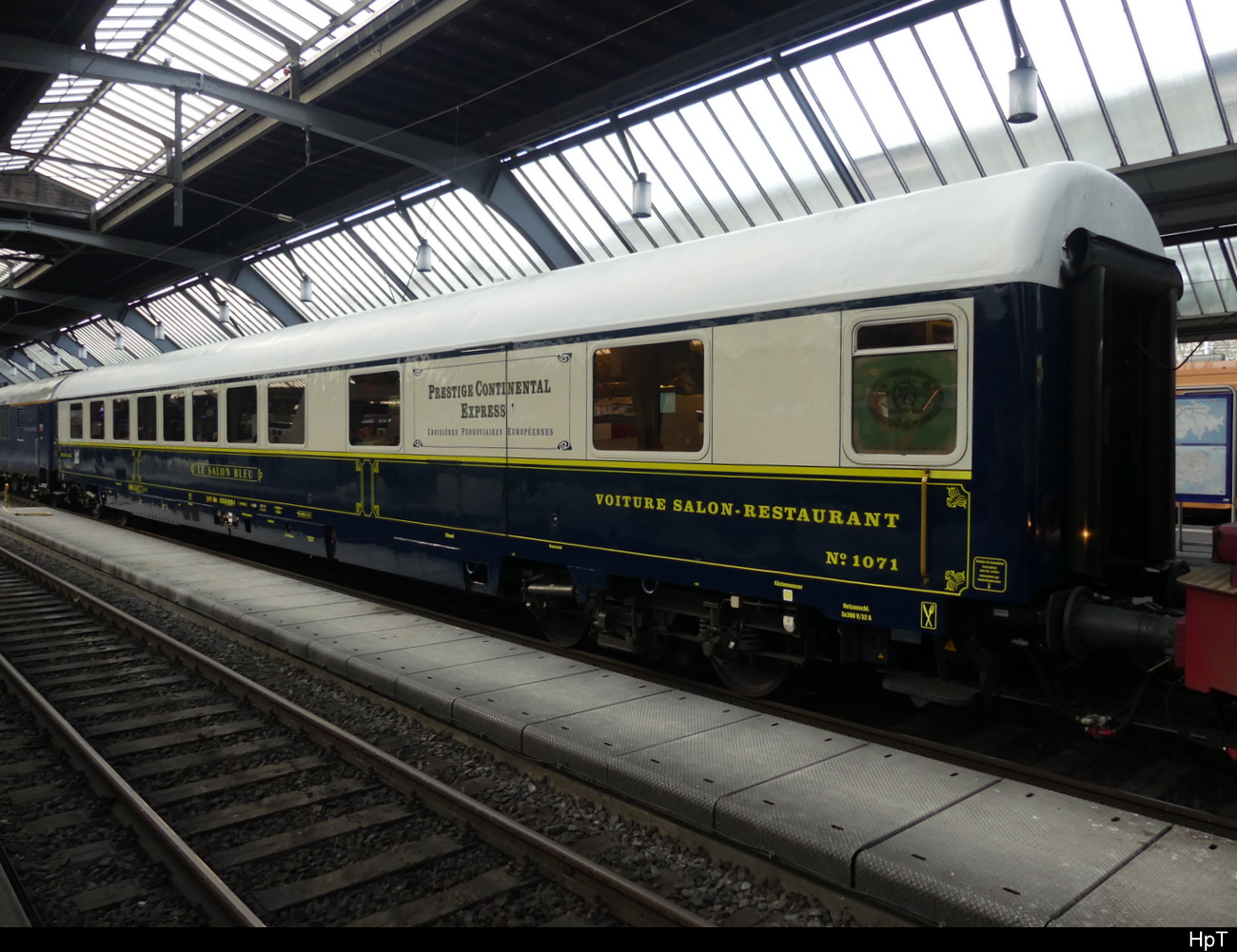 Prestige Continental Express - Speisewagen ARmz  61 85 88-90 200-6 in einem Extrazug im HB Zürich am 07.05.2023