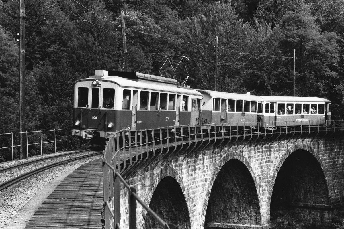 Der CEV BDe 4/4 105 im Sommer 1985 in Blonay. Nun soll der Triebwagen bei der B-C aufgearbeitet werden und ich freue mich schon jetzt ihn wieder fahren zu sehen.