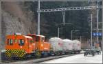 Tm 2/2 113 und 84 bei leichtem Schneefall in Landquart.