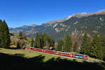RE1335 nach St.Moritz mit der Ge 4/4 II 630 "Trun" in Susch. Wegen der Bauarbeiten an der Albulastrecke (Sperrung Thusis-Tiefencastel) verkehren die RE via Vereina verstärkt. (31.10.2017)