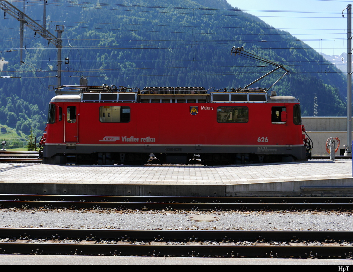 RhB - Lok Ge 4/4 626 bei Rangierfahrt im Bahnhof von Disentis am 27.07.2018