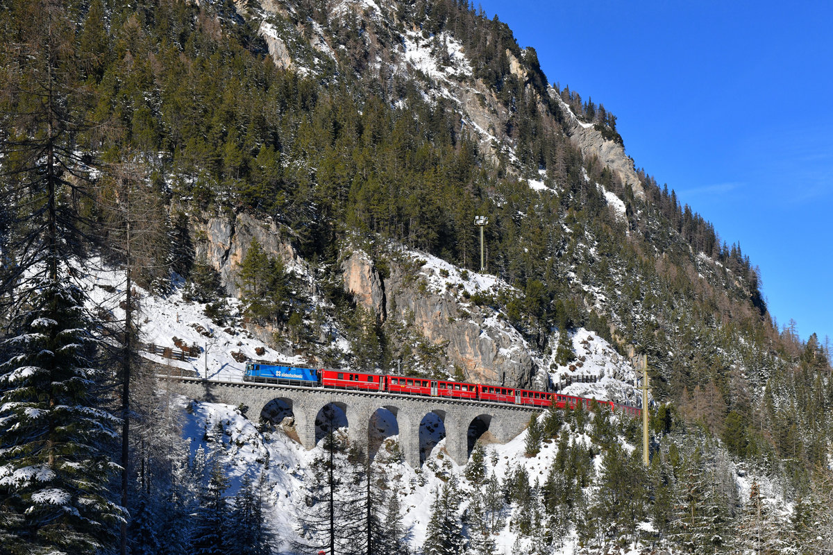 Ge 4/4 II 619 mit dem Schlittelzug am 26.12.2018 bei Muot.