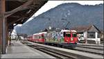 Ge 4/4 II 617 'Ilanz' mit RE1 Entlastungszug für den Spenglercup am 29.12.2025 bei Schiers, wo es ein Bisschen weiss wurde