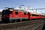 Login Lok Ge 4/4 II 611 "Landquart" mit eine RegioExpress von Disentis/Chur nach Klosters/ Scoul im Bahnhof Landquart am 16.04.08.