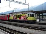 Login Lok Ge 4/4 II 611  Landquart  mit eine RegioExpress von Disentis/Chur nach Klosters/ Scoul im Bahnhof Landquart am 16.04.08.