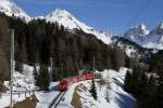 RE1257 mit Ge 4/4 II 614  Schiers  fährt in Untervaz-Trimmis ein. Im Hintergrund thront der 1775m hohe Zipperspitz. (07.04.2015)