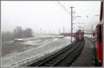 Ge 4/4 II 632 'Zizers' mit RE1 Entlastungszug für den Spenglercup am 29.12.2025 bei Schiers, wo es ein Bisschen weiss wurde