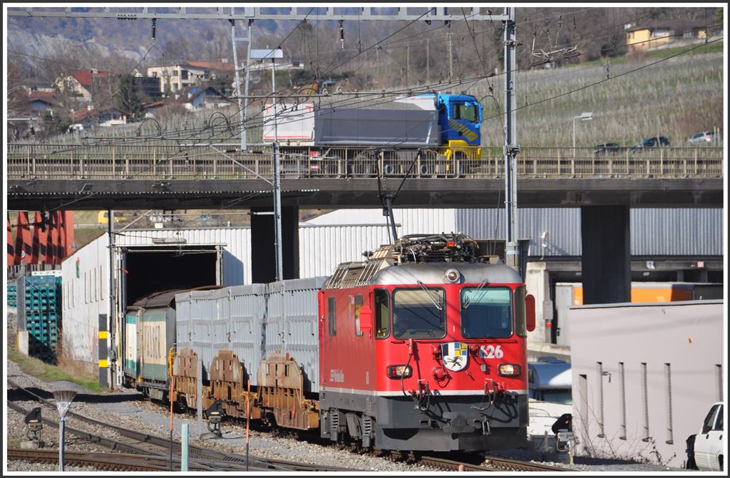 Ge 4/4 II 626  Malans  im Anschlussgleis der Valserwasser AG in Untervaz-Trimmis. (07.04.2015)