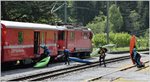 RE1753 mit Ge 4/4 II 612 "Thusis" in Trin wird scharf beobachtet.