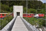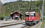 RE1753 mit Ge 4/4 II 612  Thusis  in Trin wird scharf beobachtet. (15.05.2016)