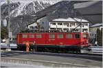 Ein RhB-Albulaschnellzug mit der Ge 6/6 II 705 "Pontresina/Puntraschigna" (Baujahr 1965), einer Albulastammkomp sowie einem Verstärkungswagen am 19. Dezember 2007 bei Celerina.