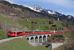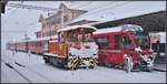 Wirklich überall viel Schnee! Regionalzug von Scuol-T. nach Pontresina fährt in Bever ein. Bever, 10.12.2020