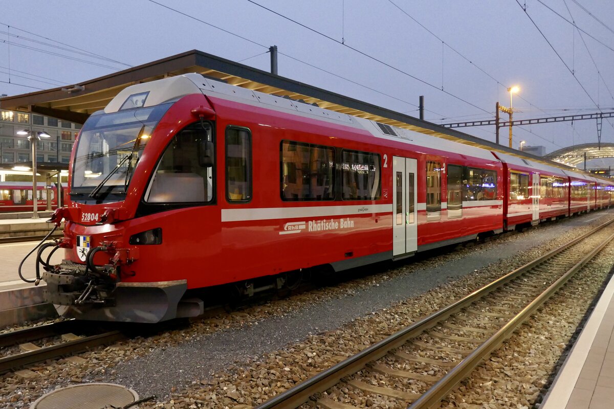 Der Bt 52804 am Alvra 5705 anstelle des At 57805 der in einen Erdrutsch geraten ist, am 13.11.22 im Bahnhof Chur.