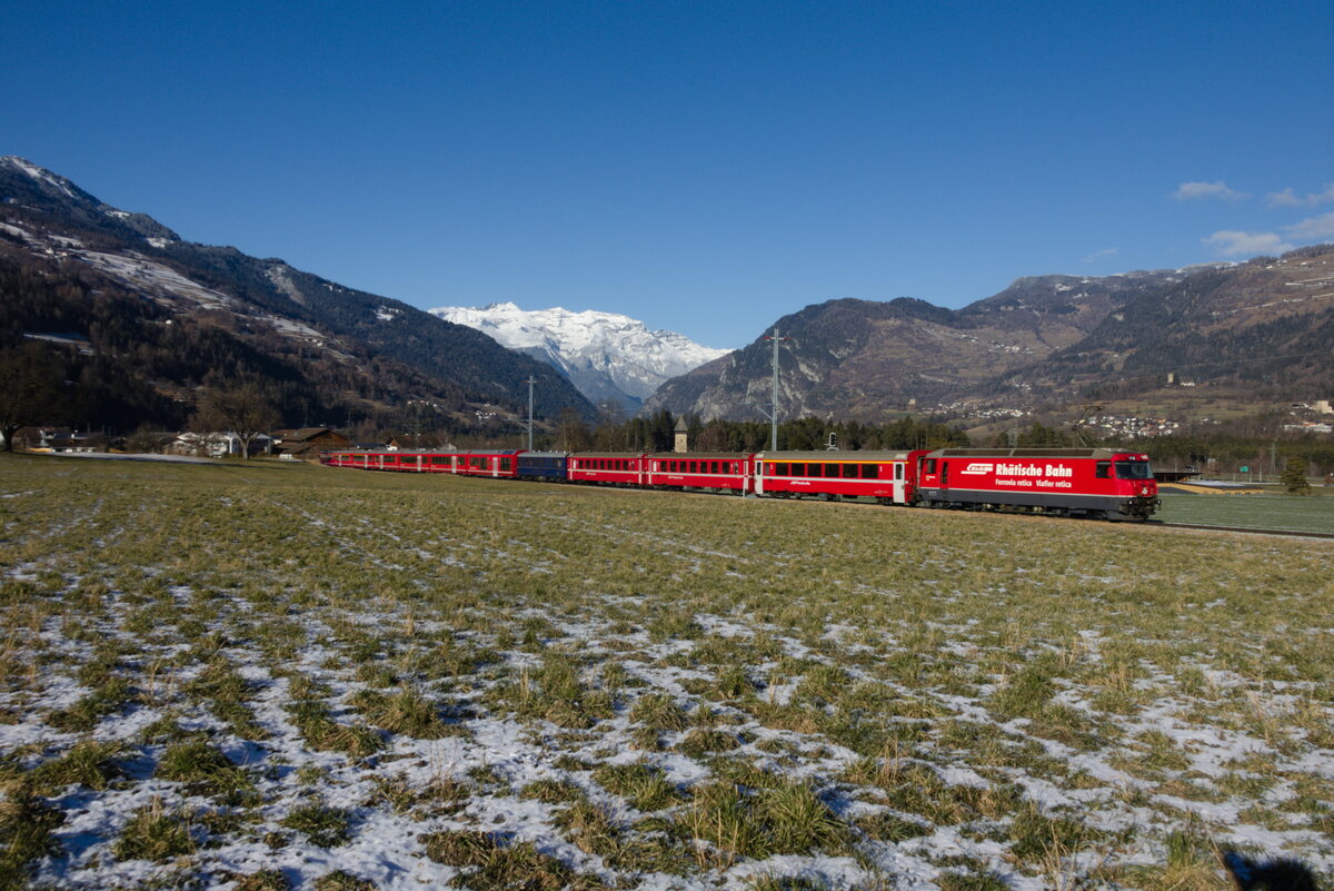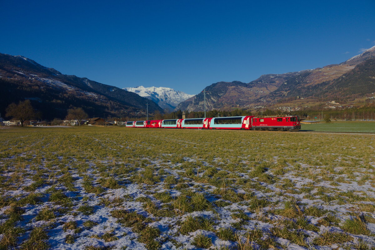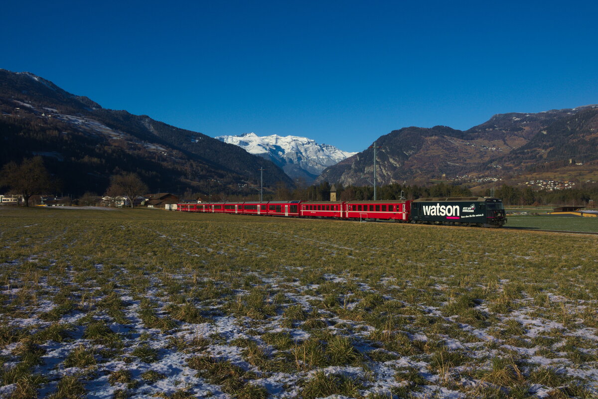 Doppel-Glacier-Express GEX 906 + 908 Zermatt - Chur - St. Moritz mit Ge 4/4 III 647 "Grüsch" durchfährt den Zalainttunnel bei Filisur. (19.05.2013)