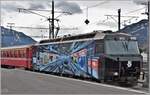 Die Ge 4/4 III 641  Maienfeld  mit der Werbung von Coop wartet auf die Abfahrt mit dem IR nach Chur in St.Moritz