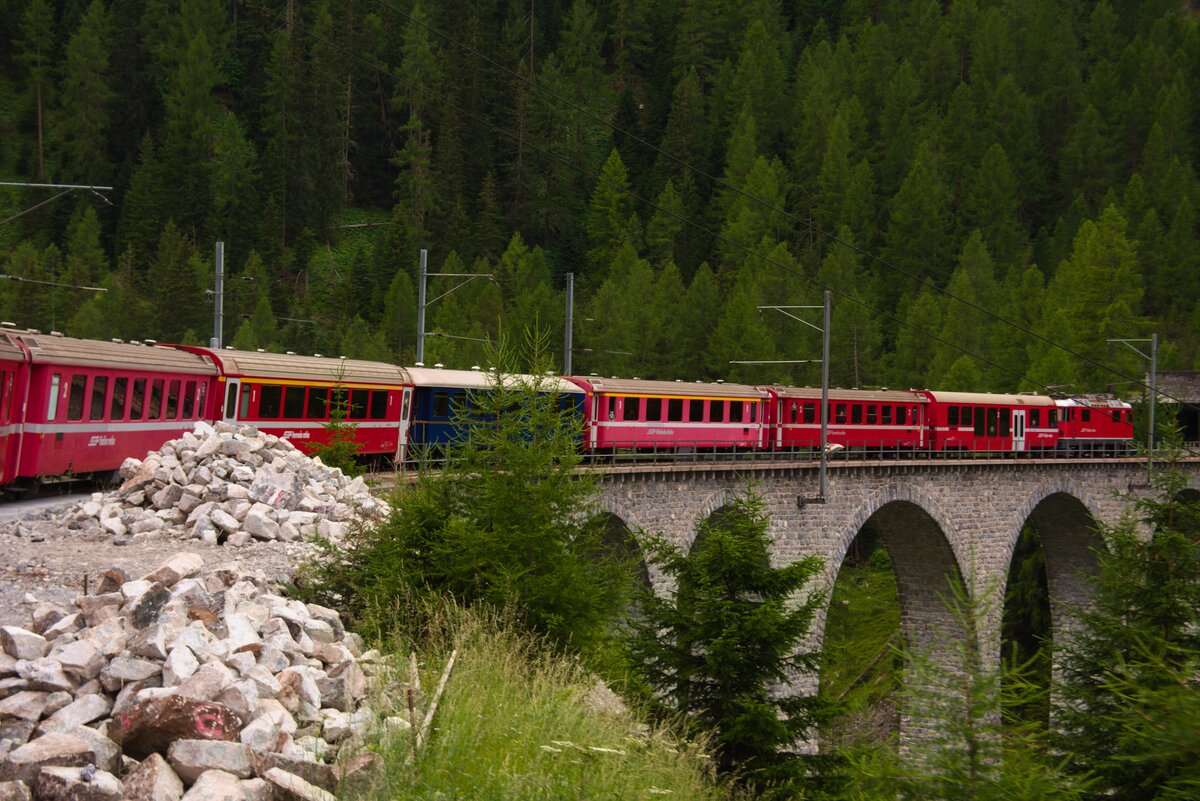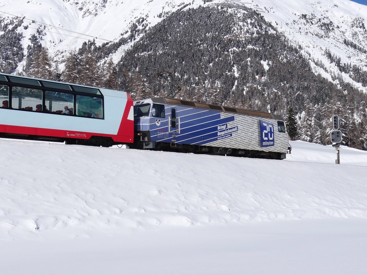 Die Ge 4/4 III 649 "20 minuten" fahrt mit ein Regioexpress von Sankt-Moritz nach Chur.