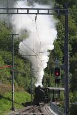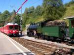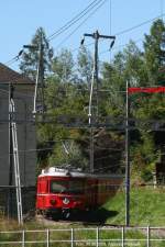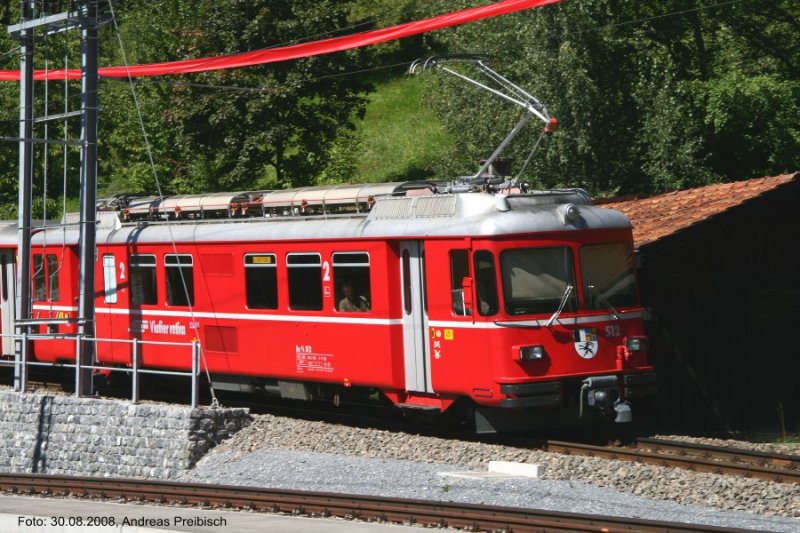 Ausfahrender Pendelzug nach Davos mit Be 4/4 512 und Steuerwagen 1712. Normalerweise fahren hier Ge 4/4 I Pendelzugkompositionen.(Filisur, 30.08.2008)