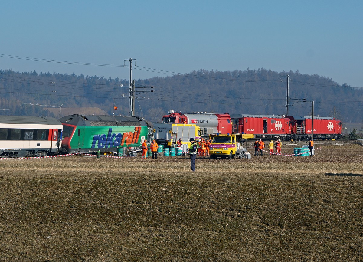 SBB: Zugskollision vom 20. Februar 2015 in Rafz. Beim Fotografieren wurden die Weisungen des Sicherheitspersonals strikte eingehalten.