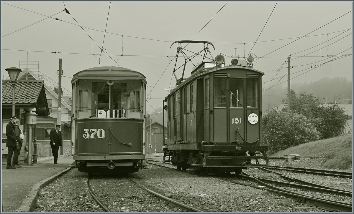 Der von der B-C als Leihgabe an die Association Genevoise du Musée des Tramways abgegebene Fe 4/4 151 (Baujahr 1911) weilt für ein paar Wochen zu Besuch an der Riviera Vaudoise und zeigt sich hier in Blonay.