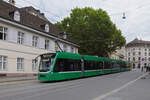 Be 6/8 Flexity 5003 mit der Sunrise Werbung, auf der Linie 14, fährt den Steinenberg hinunter zur Haltestelle Barfüsserplatz. Die Aufnahme stammt vom 17.07.2022.