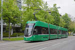 Be 4/6 Flexity 6014, auf der wegen einer Baustelle umgeleiteten Linie 15, fährt am 02.09.2025 zur Haltestelle Messeplatz. Aufnahme Basel. Markus Wagner