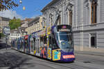 Be 6/8 Flexity 5009 mit der Yallo Werbung, auf der Linie 3, fährt den Steinenberg hoch zur Haltestelle Bankverein. Die Aufnahme stammt vom 19.07.2022.