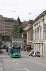 Be 6/8 Flexity 5009 mit der Yallo Werbung, auf der Linie 3, fährt den Steinenberg hoch zur Haltestelle Bankverein.