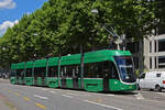Be 6/8 Flexity 5028 mit der Werbung für die Basler Museen, auf der Linie 1, fährt am 16.07.2022 zur Haltestelle Schützenhaus.