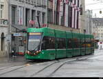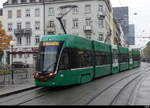 Be 4/6 Flexity 6014, auf der wegen einer Baustelle umgeleiteten Linie 15, fährt am 02.09.2025 zur Haltestelle Messeplatz. Aufnahme Basel.