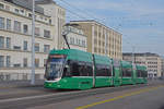 Be 6/8 Flexity 5016, auf der Linie 1, überquert am 09.01.2023 die Dreirosenbrücke.