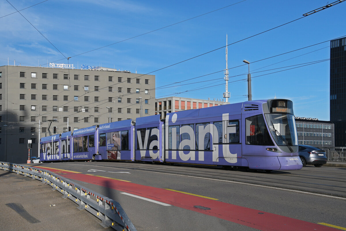 Be 6/10 Tango 155, auf der Linie 10, fährt zur Haltestelle am Bahnhof SBB. Die Aufnahme stammt vom 14.02.2019.