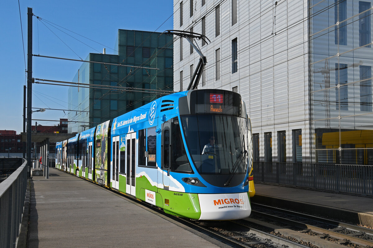 Be 6/10 Tango 166, auf der Linie 10, fährt am 04.03.2024 zur Haltestelle Hüslimatt.