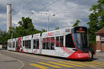 Be 6/10 Tango 187 mit der Werbung für den Wohnpark Binzen, auf der Linie 11, bedient am 12.05.2025 die Haltestelle St. Johanns Tor. Aufnahme Basel.