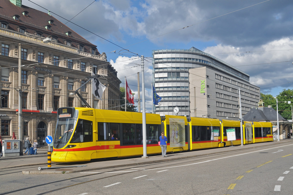 Wegen der Großbaustelle am Steinenberg, muss die Linie 10 am Aeschenplatz wenden. Hier wartet der Be 6/10 Tango 189 an der Endstation am Aeschenplatz. Die Aufnahme stammt vom 10.09.2017.