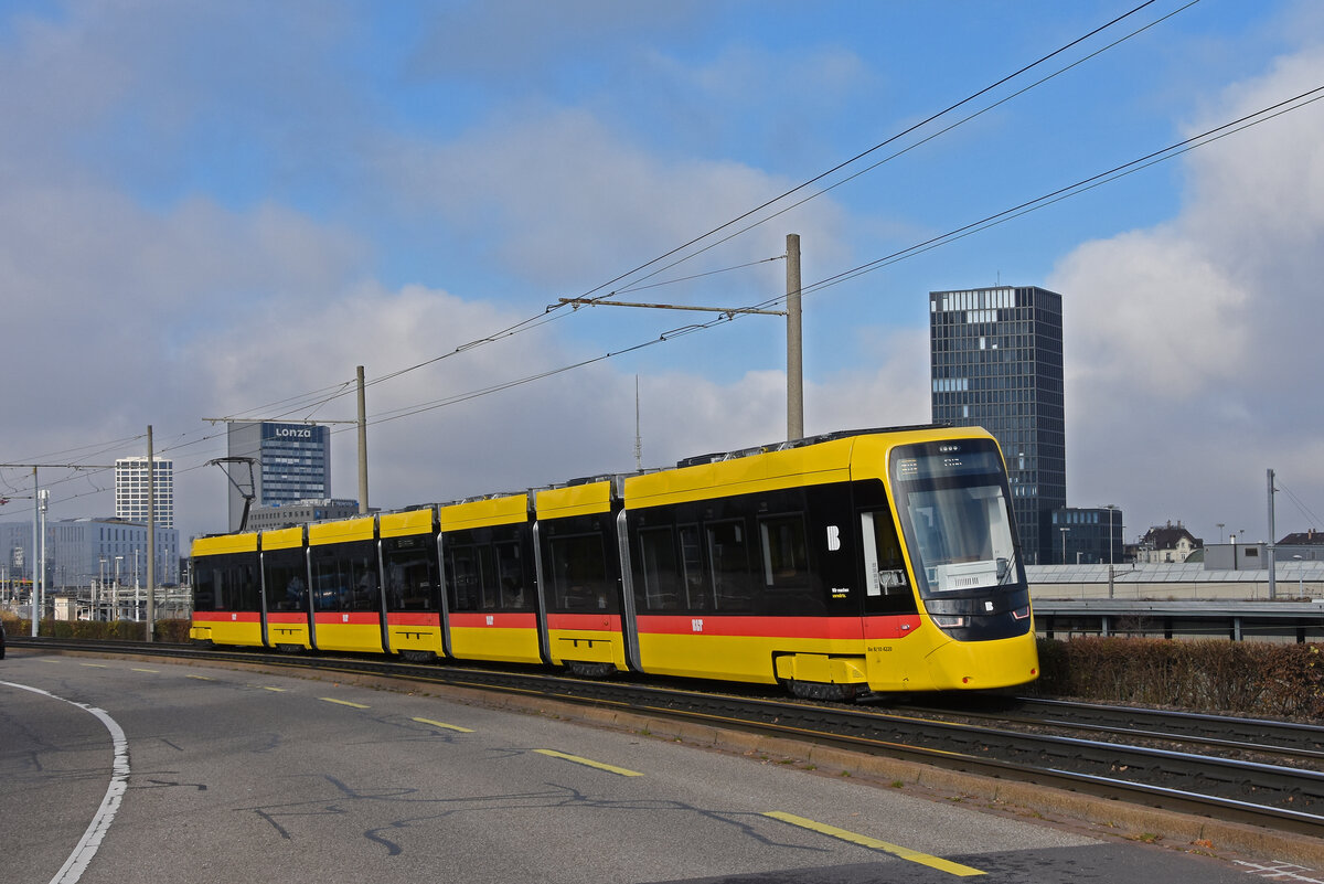 Be 8/10 TINA 4221, auf der Linie 11, überquert am 11.08.2025 die Münchensteinerbrücke. Aufnahme Basel.