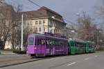 Tango fährt zur Station Heuwaage auf der Linie 10. Das Bild wurde von einem Viadukt aus gemacht. Die Linie 10 wendet an allen drei Fasnachts-Nachmittagen an der Heuwage. Die Aufnahme stammt vom 28.02.2012.
