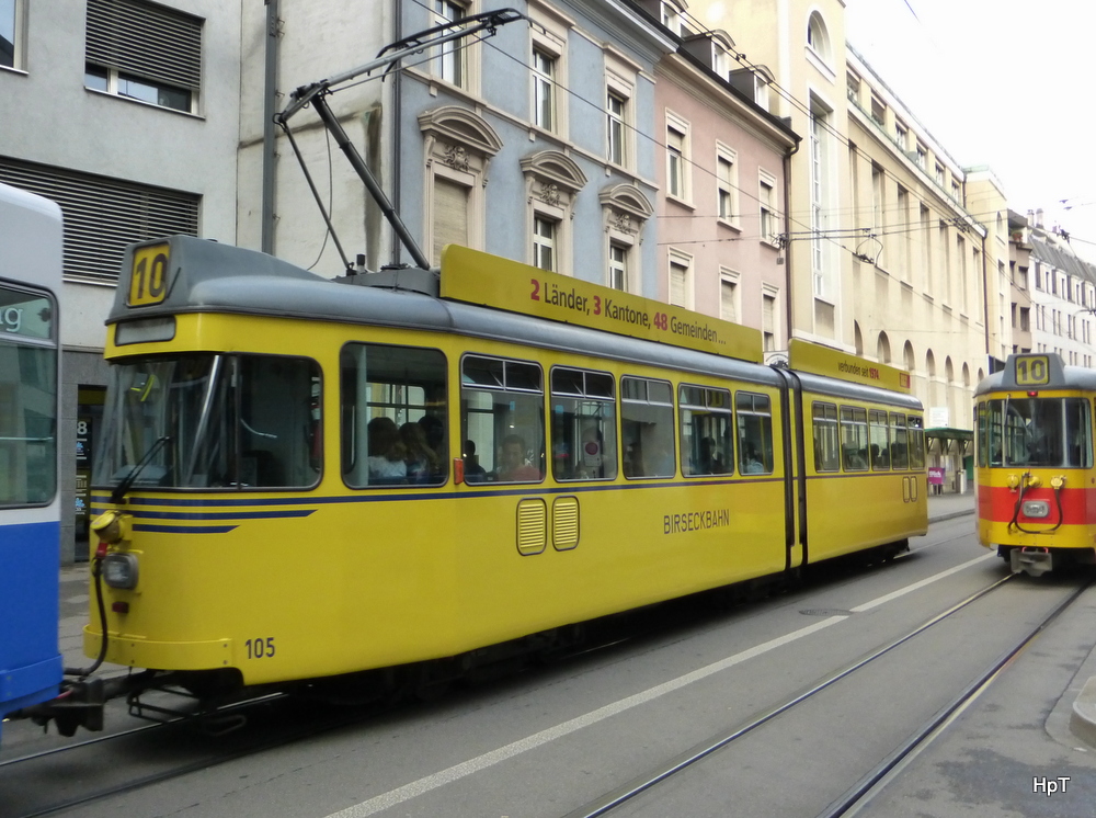 BLT - Be 4/6 105 unterwegs auf der Linie 10 in der Stadt Basel am 20.09.2014