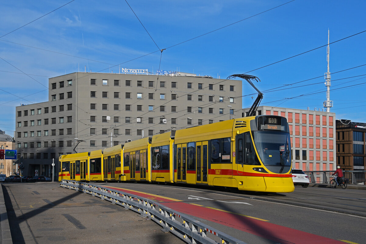 Basel BLT Tram 10 (Stadler Be 6/10) Steinenberg / Elisabethenstrasse / Aeschenvorstadt am 6. Juli 2015.