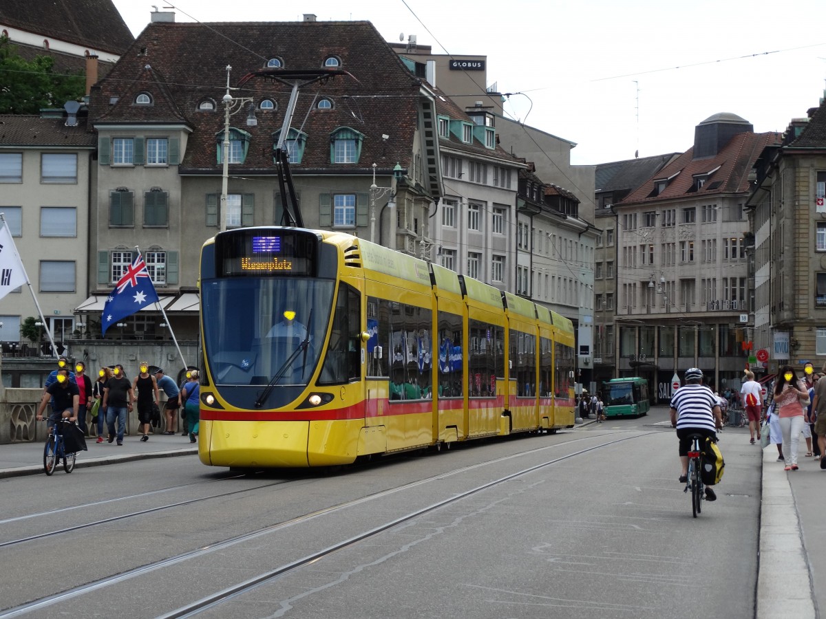 BLT Basel Stadler Be 6/10 Tango am 25.07.15 in Basel Mittlere Brücke