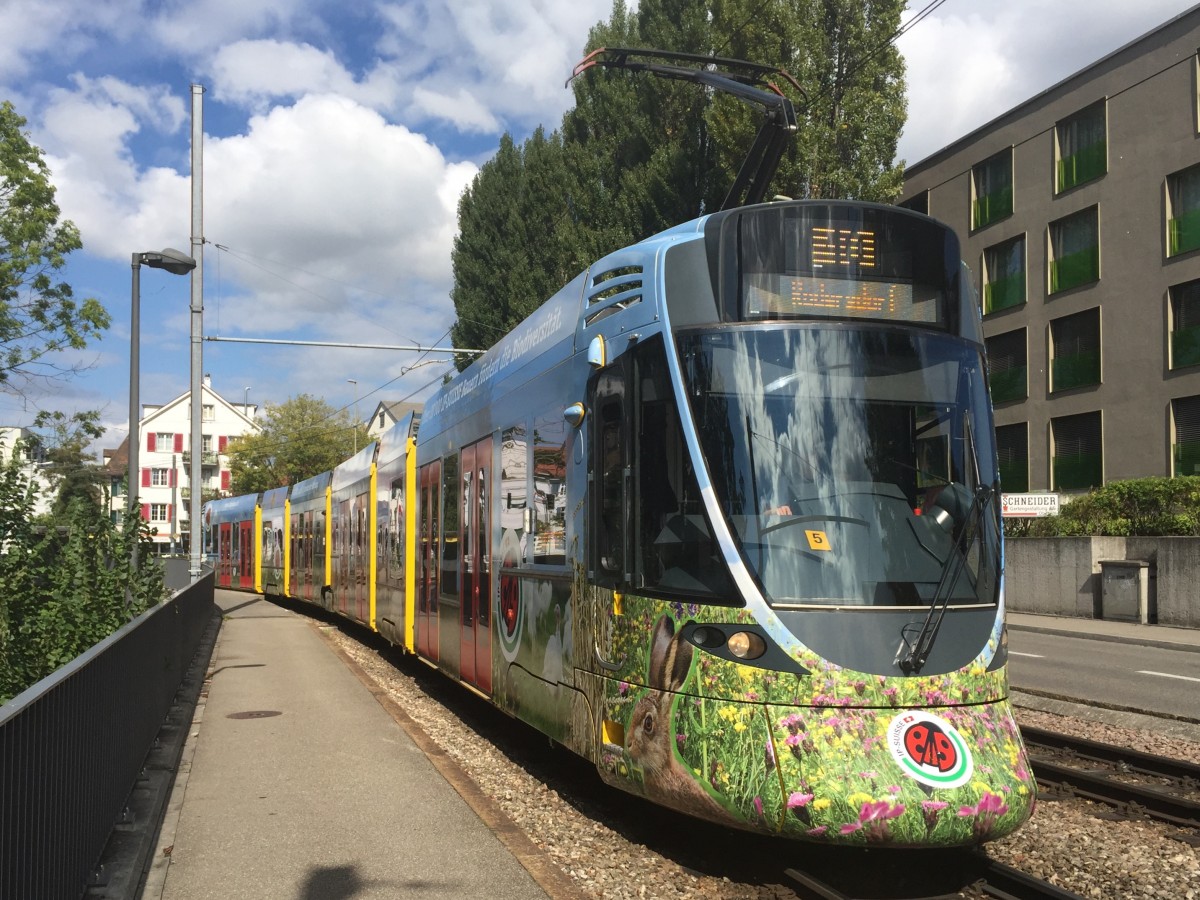 Be 6/10 152 mit der neuen Vollwerbung für "IP Suisse" unterwegs auf der Linie 10 in Binningen, 20.09.2015