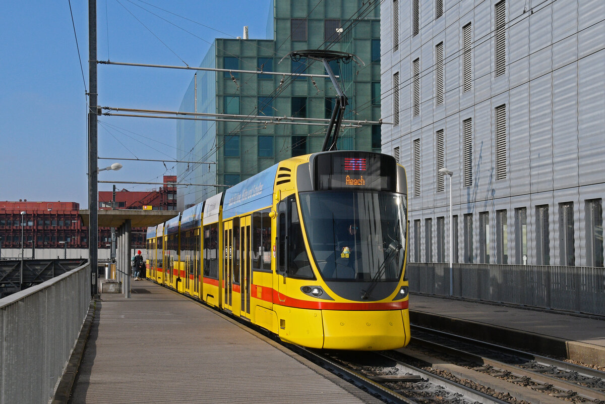 Be 6/10 Tango 182, auf der Linie 10, fährt zur Haltestelle am Bahnhof SBB. Die Aufnahme stammt vom 18.03.2016.