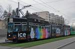 Doppeltraktion, mit dem Be 4/8 254 und dem Be 4/6 257, auf der Umgeleiteten Linie 17, bedient die Haltestelle Hirzbrunnen Claraspital. Die Aufnahme stammt vom 27.08.2016.