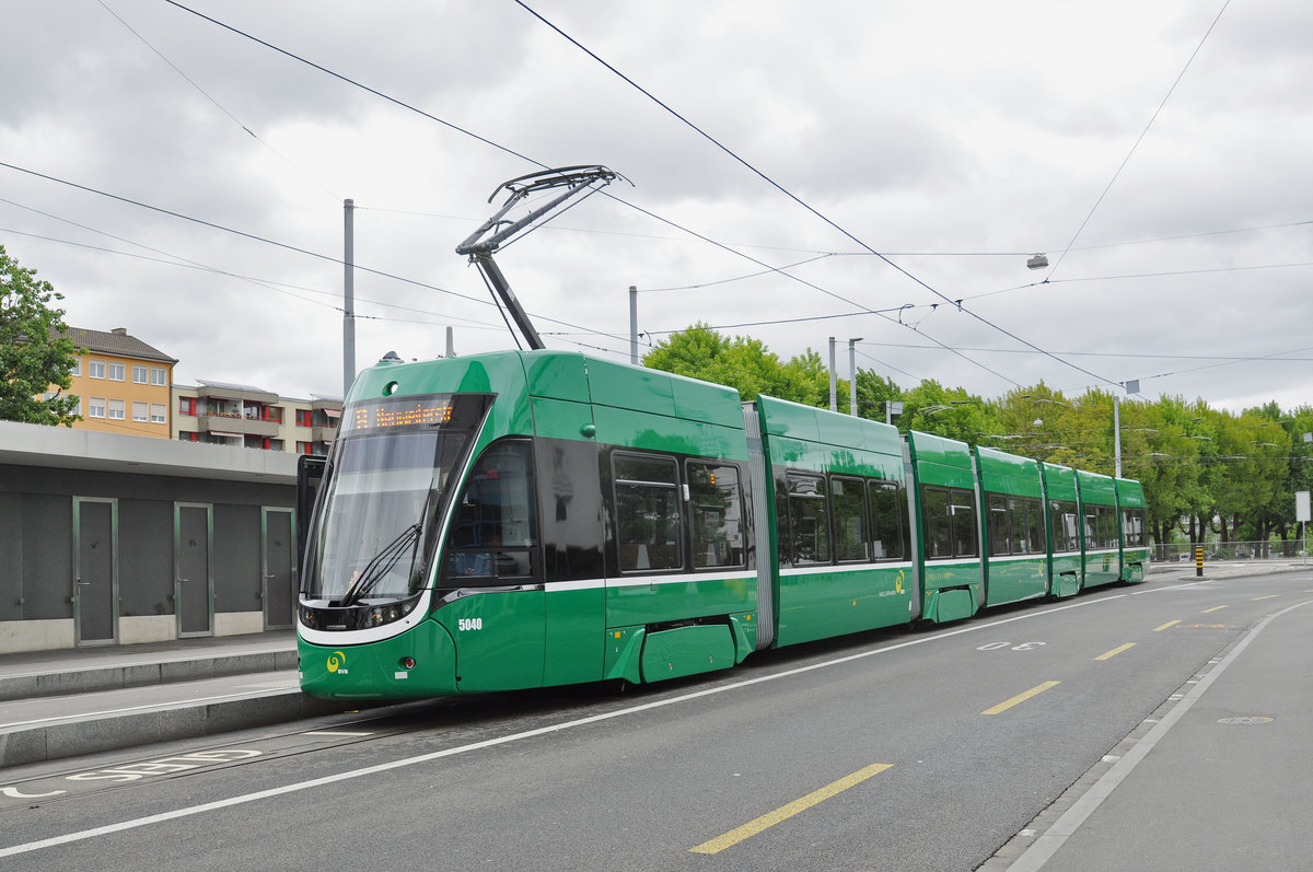 Be 6/8 Flexity 5040, auf der Linie 8, wartet an der Haltestelle Kleinhüningen. Die Aufnahme stammt vom 07.05.2017.